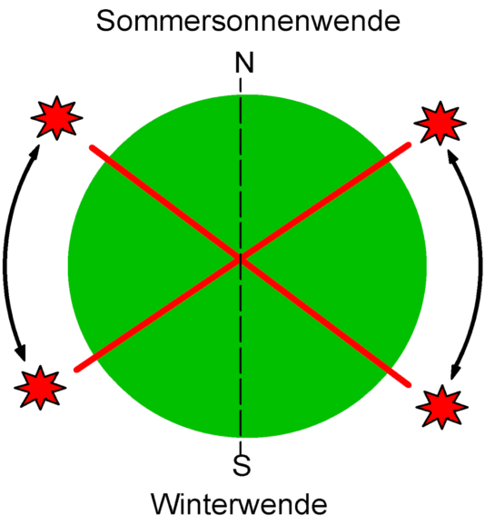 Falls Sie die Seite über die Himmelsbeobachtung schon gelesen haben, erinnern Sie sich bestimmt noch an das Sonnendiagramm, das Bild der wandernden Sonnenaufgänge und Untergänge